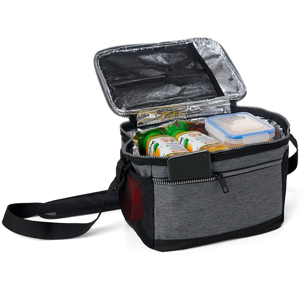 A bolsa térmica 10 litros personalizada em nylon é o acessório ideal para piqueniques, churrascos, praia ou viagens, mantendo alimentos e bebidas gelados por horas. Com capacidade de 10 litros, dois compartimentos (principal com revestimento térmico e bolso telado para utensílios), bolsos laterais em malha e alça transversal com apoio para ombro, esta bolsa térmica personalizada mede aproximadamente 20cm de altura x 27cm de largura x 18cm de profundidade (peso 355g). Perfeita para gravação de logotipo em área de 9cm x 23cm, ela se destaca como brinde promocional térmico para empresas, eventos gourmet ou ações corporativas.