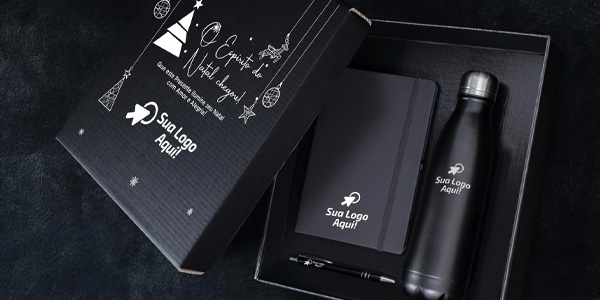 Kits corporativos — combinação de produtos personalizados.
